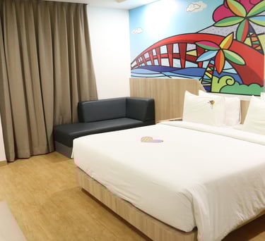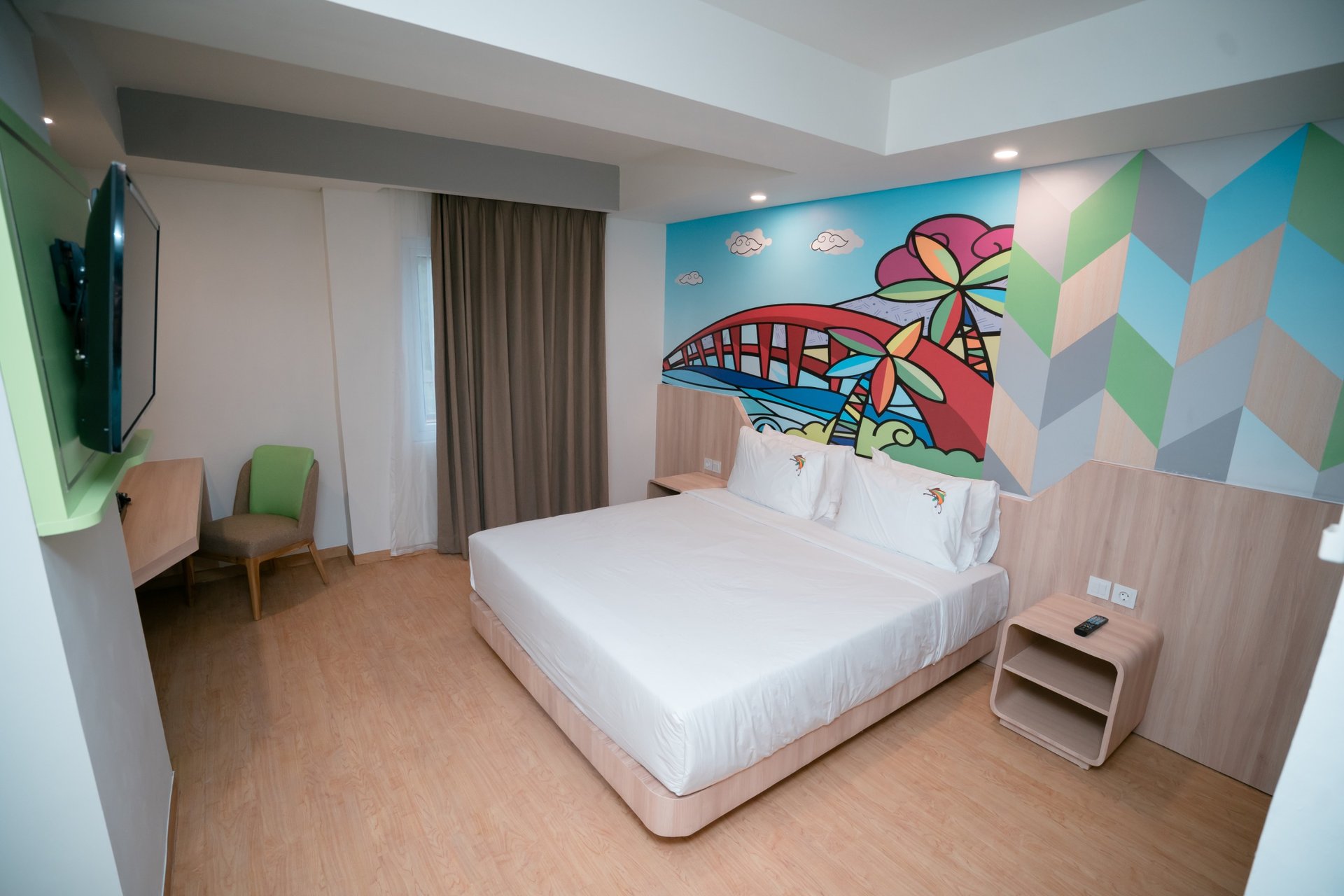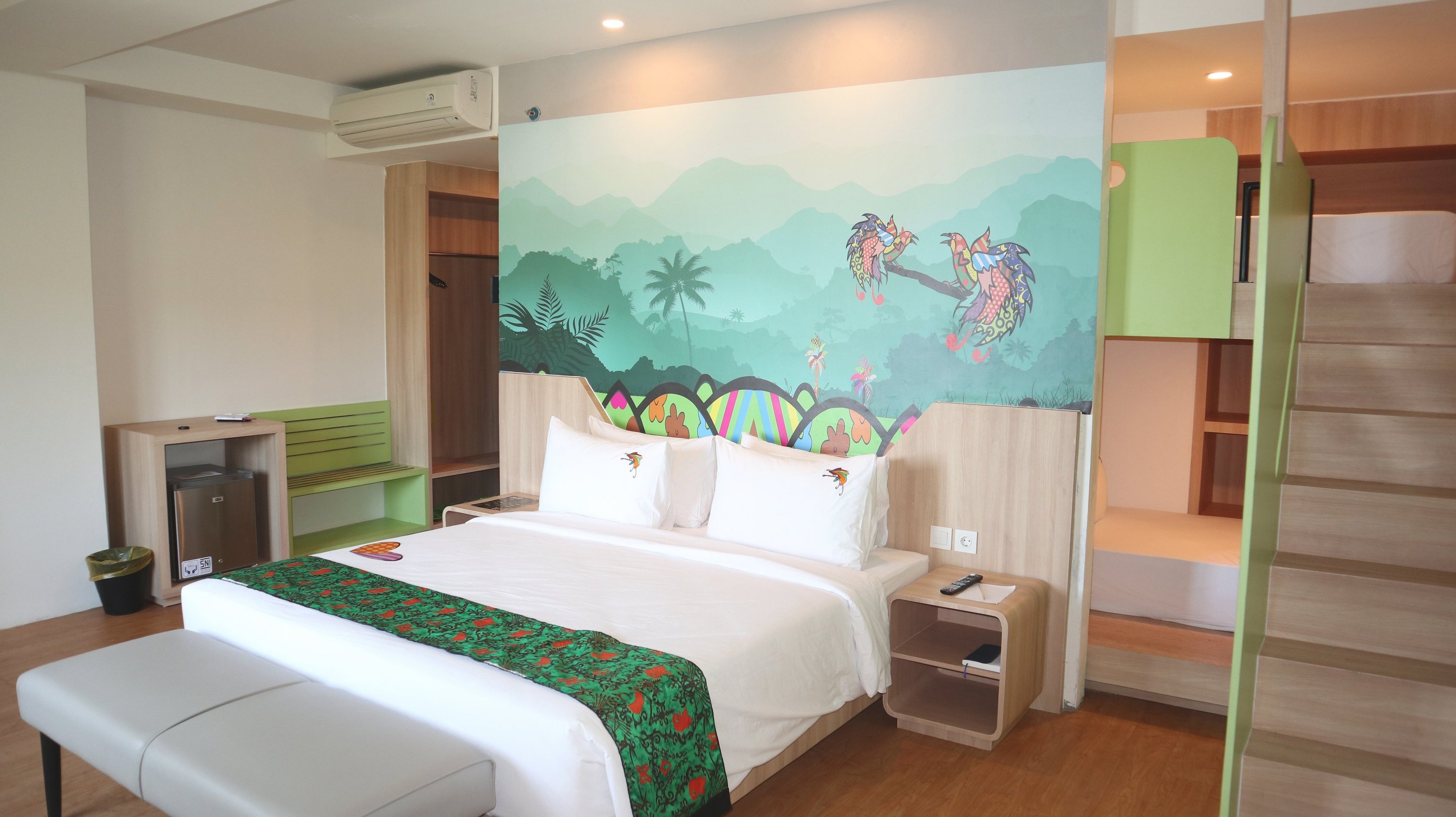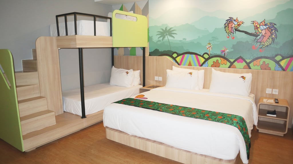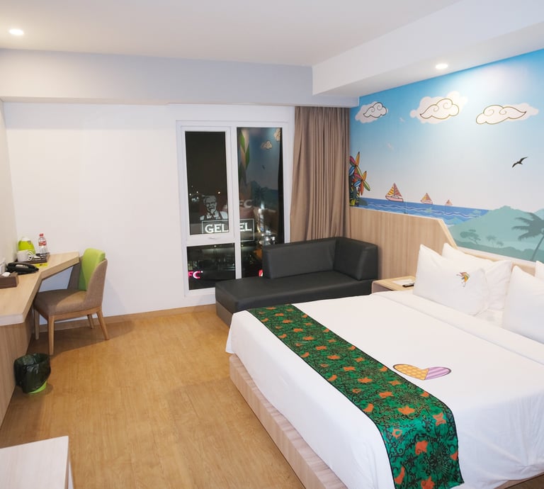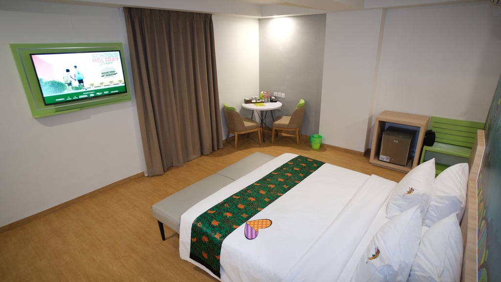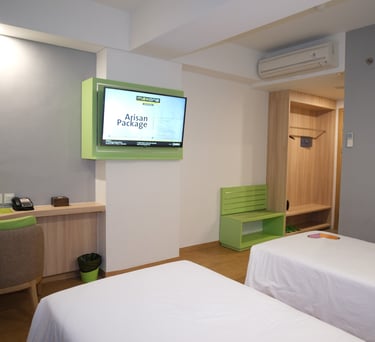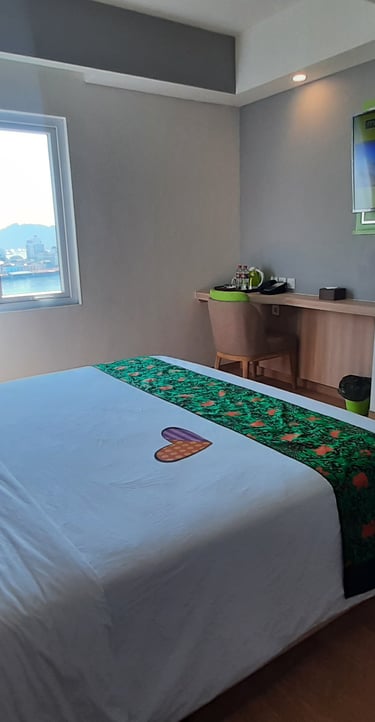 Rasakan kenyamanan luas dengan pemandangan kota Jayapura, dilengkapi fasilitas modern dan sentuhan elegan hijau neon.